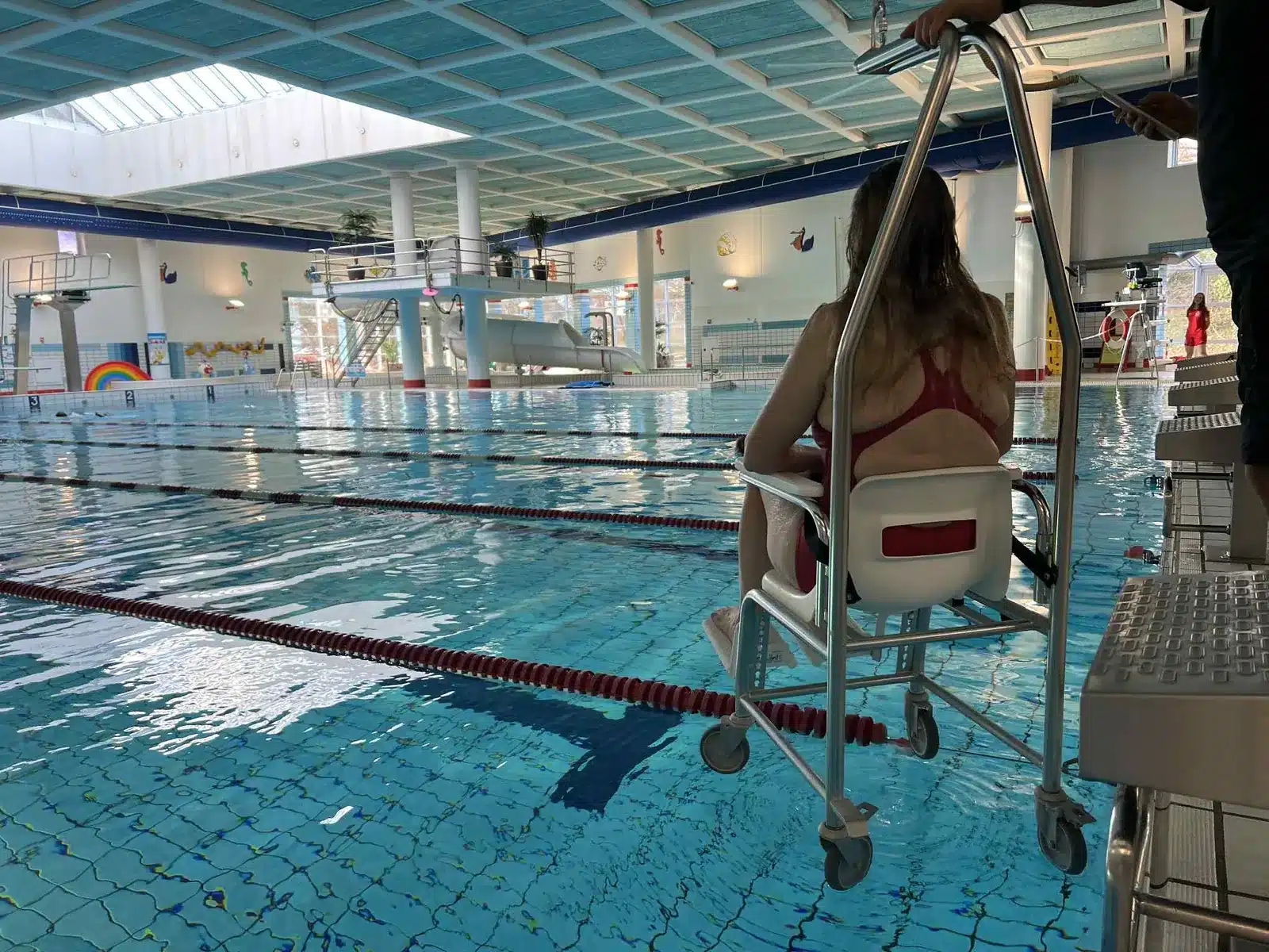 I svømmehallen finder du en lift som giver dig adgang til både øvebassin og 25m bassin.